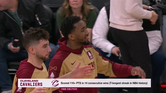轉(zhuǎn)播方曬出數(shù)據(jù),騎士目前取得14連勝,且這期間他們每場(chǎng)得分都是110+。這也追平了凱爾特人在1985-86賽季保持的NBA歷史紀(jì)錄!