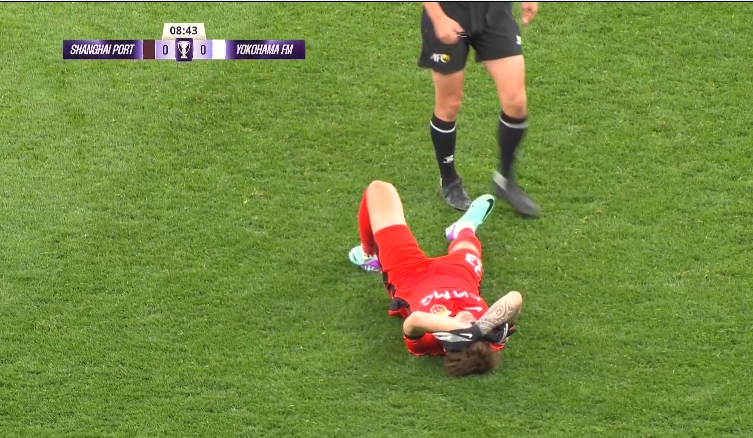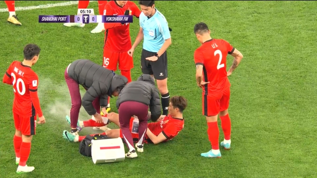 03月04日訊 亞冠精英聯(lián)賽東亞區(qū)1/8決賽首回合,上海海港vs橫濱水手。比賽第6分鐘,傅歡在一次回傳之后向場邊招手示意隨后倒在場內(nèi),似乎是申請換人。