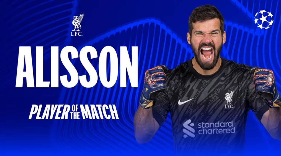 9次撲救力保球門不失,官方:阿利森當(dāng)選利物浦1-0巴黎全場最佳?