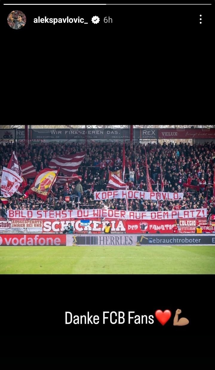 拜仁球迷也鼓勵(lì)他:“加油,帕夫洛維奇!你很快就能夠重返球場!”帕夫洛維奇也通過社媒曬出照片,并回復(fù):“謝謝拜仁球迷們!”