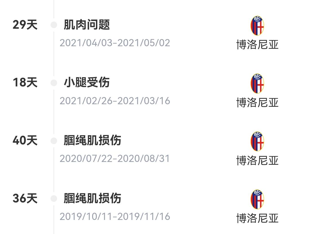 實際上在富安健洋效力于博洛尼亞的時候,就顯現(xiàn)出了玻璃人的屬性,他多次因為肌肉傷病缺席比賽。