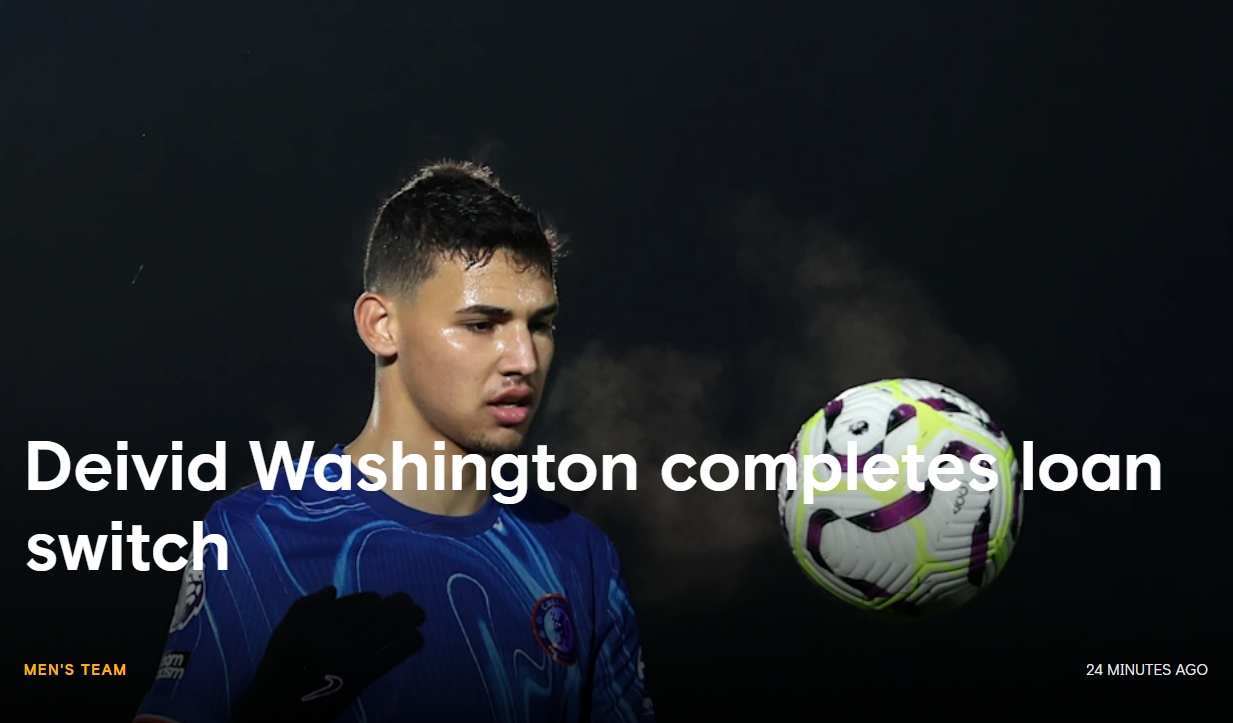 切爾西官方消息,球隊前鋒戴維德-華盛頓租借加盟桑托斯。