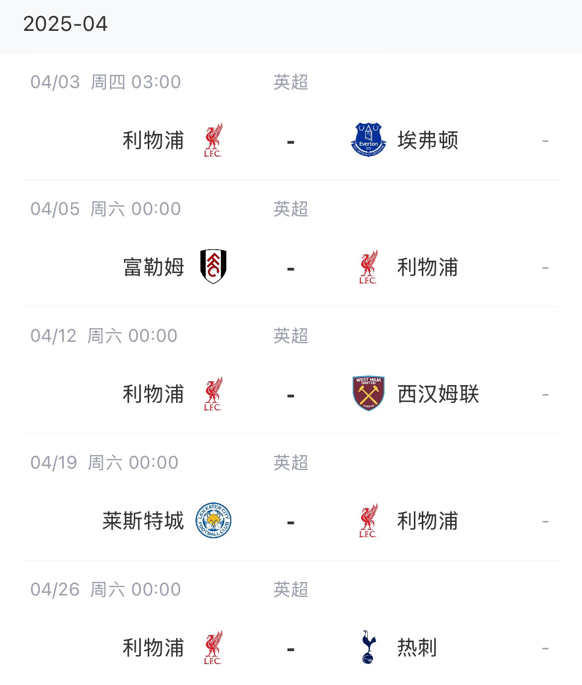 利物浦還剩11輪英超,下輪他們將對(duì)陣紐卡,4月底將迎來(lái)關(guān)鍵階段,接連對(duì)陣熱刺、切爾西、阿森納等隊(duì)。此外,利物浦歐冠1/8決賽將對(duì)陣巴黎,足總杯他們已被淘汰,聯(lián)賽杯則打進(jìn)決賽將對(duì)陣紐卡。